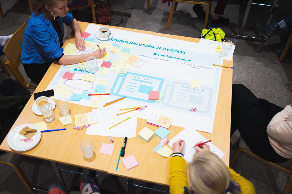 The Konepaja space had been activated by the ANTI Festival with single artistic projects and events for some years before the project started. When we organised the first co-design workshop for the local community in autumn 2022, the invitation to come and plan the future of Konepaja gathered more participants than we expected. It was clear that this particular space interests and inspires local people enormously. The pilot space is located in the middle of the rapidly changing neighbourhood. The upcoming development plans of the area also inspired us to focus on this particular neighborhood.