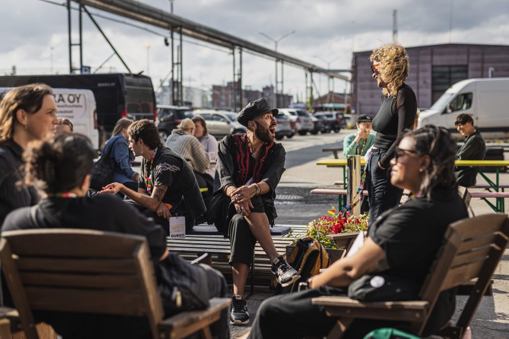 People in the yard of Konepaja & Festival Club © Akseli Muraja