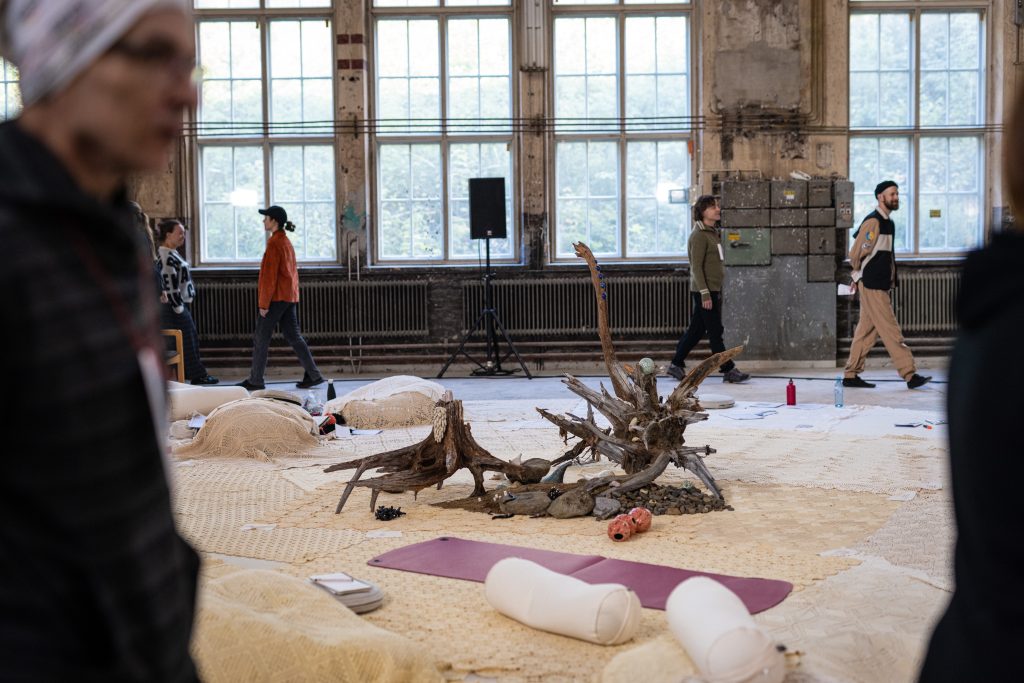 We worked with the local coalition over the series of workshops in 2022 and 2023, and through weekly meetings in 2024 before we found the right rhythm for their gatherings. The co-design workshops were facilitated by the FEMMA Planning, an urban planning collective focused on participatory processes. Finally, in the year 2025 all elements were working as they were supposed to at the Culture Workshop Konepaja. The community gathered once a month and in addition came together in the series of year-round workshops leading to the artistic highlight of the pilot, A Piece of Space: 106 Hours Assembly conceptualised and directed by the artist Tea Andreoletti.
